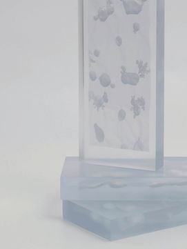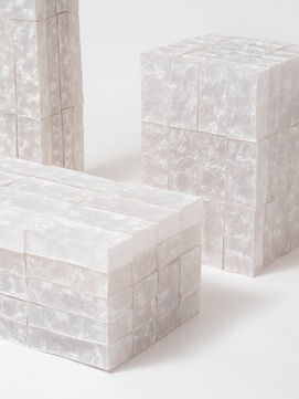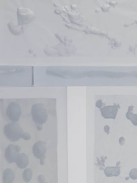 정예린은 ‘종이’에 입체적 성질을 물리적으로 부여한다. 돌을 표현하던 물을 표현하던 물이면서 돌, 공기이면서 물을 정예린의 세계 속 종이는 알레고리로써 기능한다. ‘BLOOM’ 시리즈는, 종이에 열을 가해 기하하적으로 규정할 수 없는 우연한 기포를 만들어낸다. ‘종이’라는 매체가 갖는 감각적 성질을 자족적으로 드러내어 평면성과 입체성, 바탕과 대상을 물리적 이미지로 표현함과 동시에 기호적 종이에 의해 관념적 종이는 해체된다.